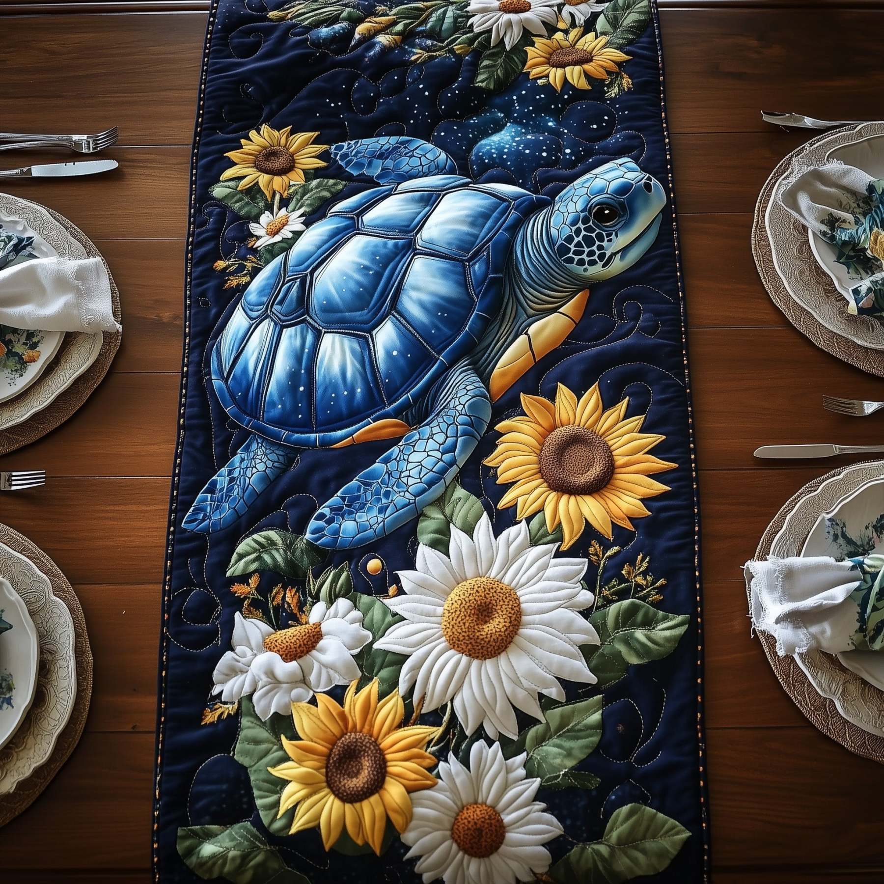 Celestial Bloom Turtle Quilted Table Runner GFTOHD6606