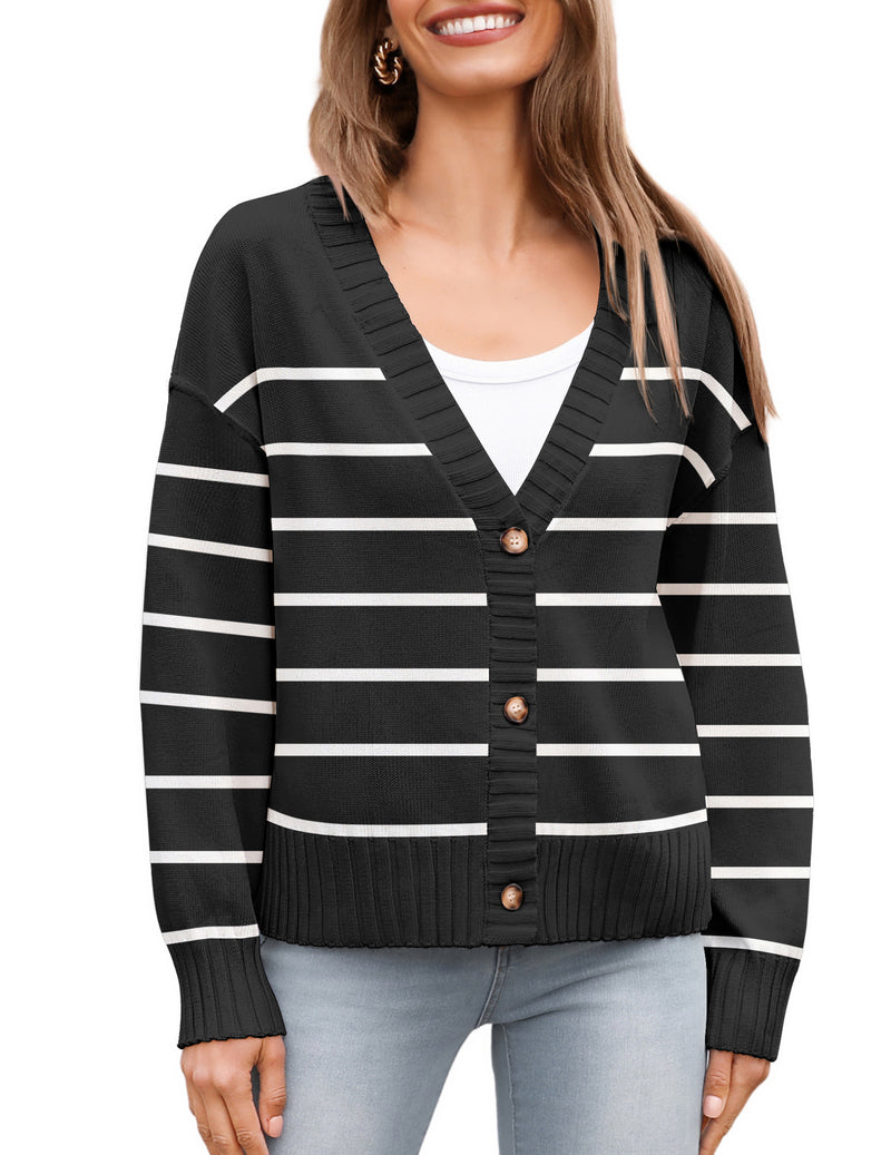 Zeagoo Women's 2023 Fall Chunky Knit Cardigans Open Front Long Sleeve V Neck Button Loose Cardigan Sweaters