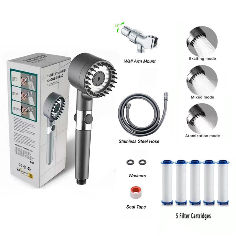 Antibacterial High-Pressure Shower Head Kit – With Filter and Massaging Function