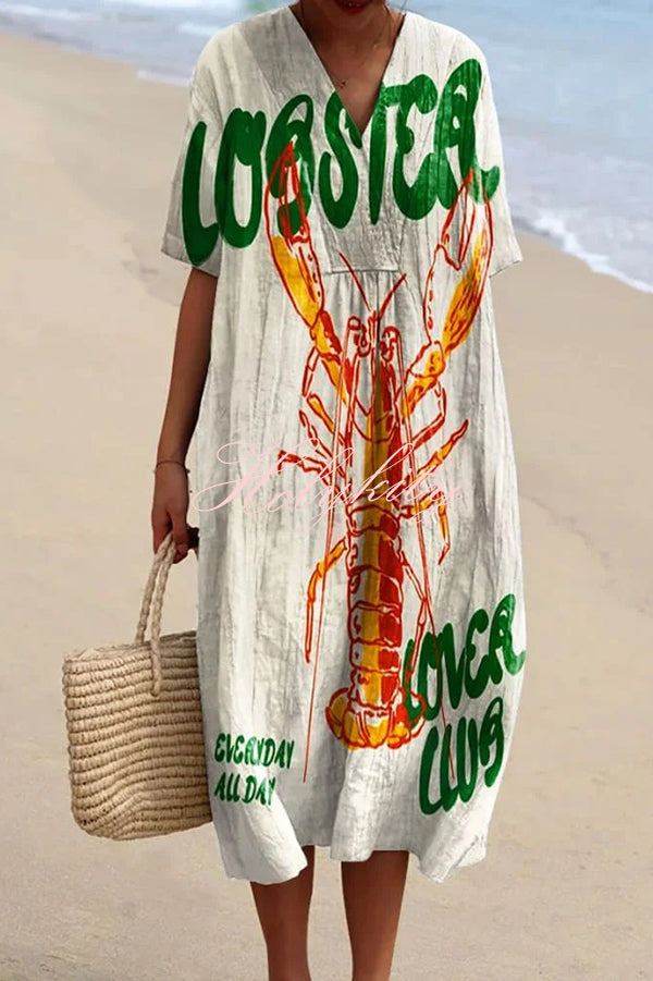 Unique Marine Print V-neck Short-sleeved Midi Dress