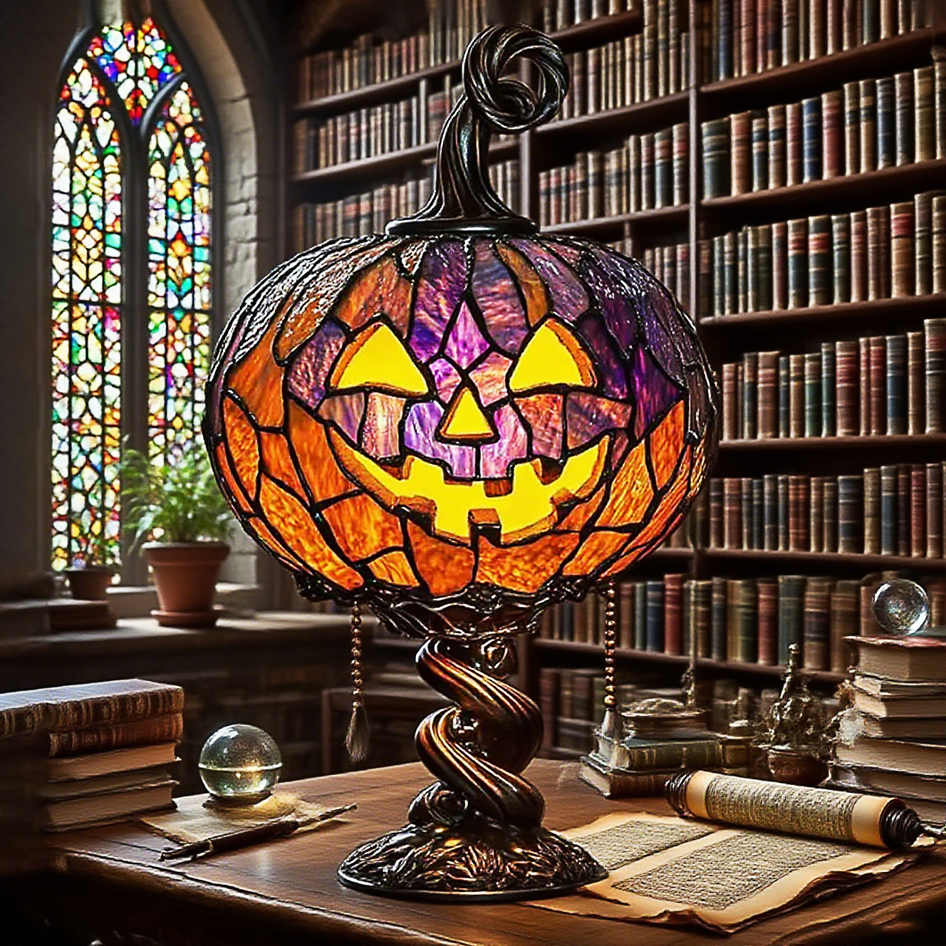Hand-painted Halloween Stained Glass Suncatcher