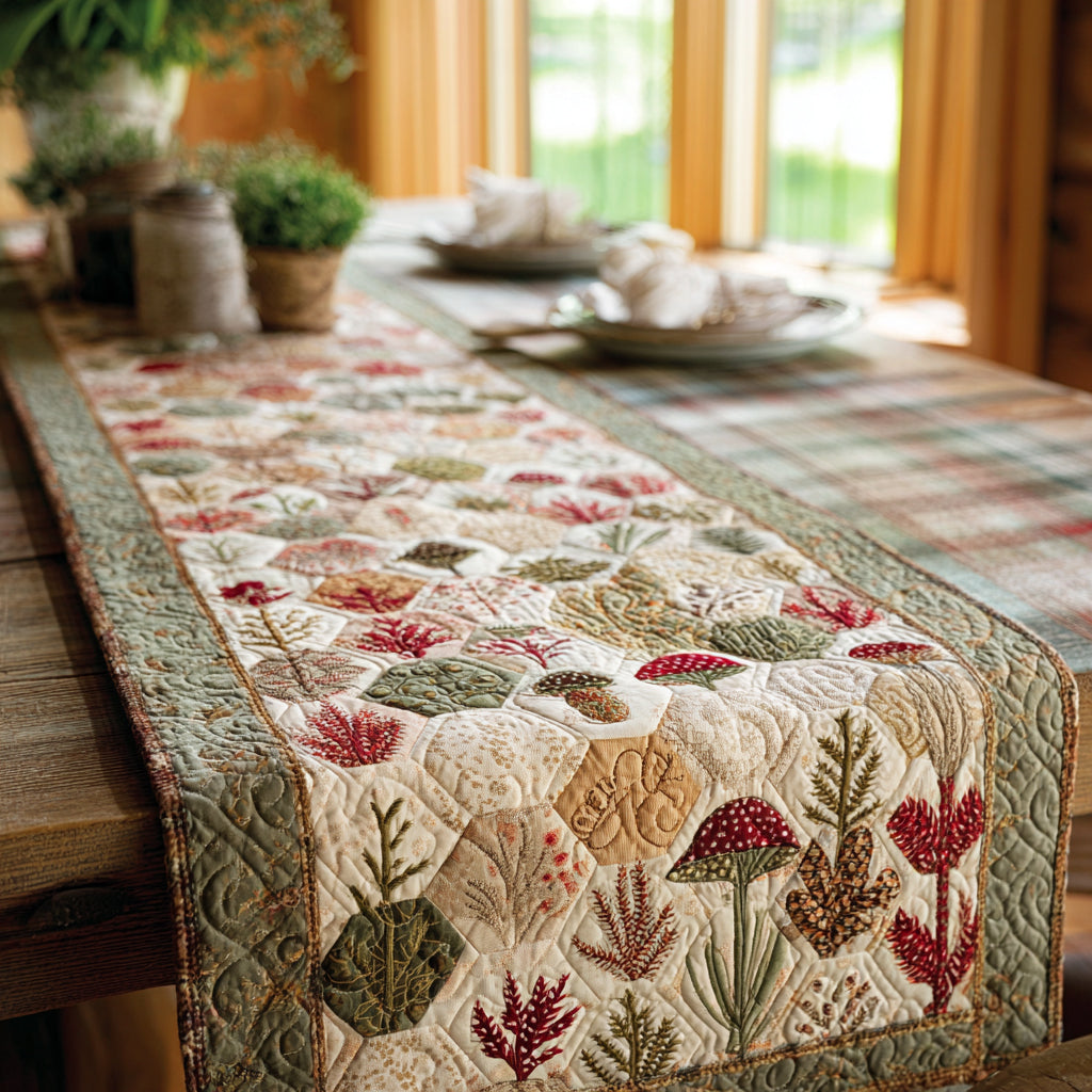 Mushroom Garden Quilted Table Runner NCU0DV1514