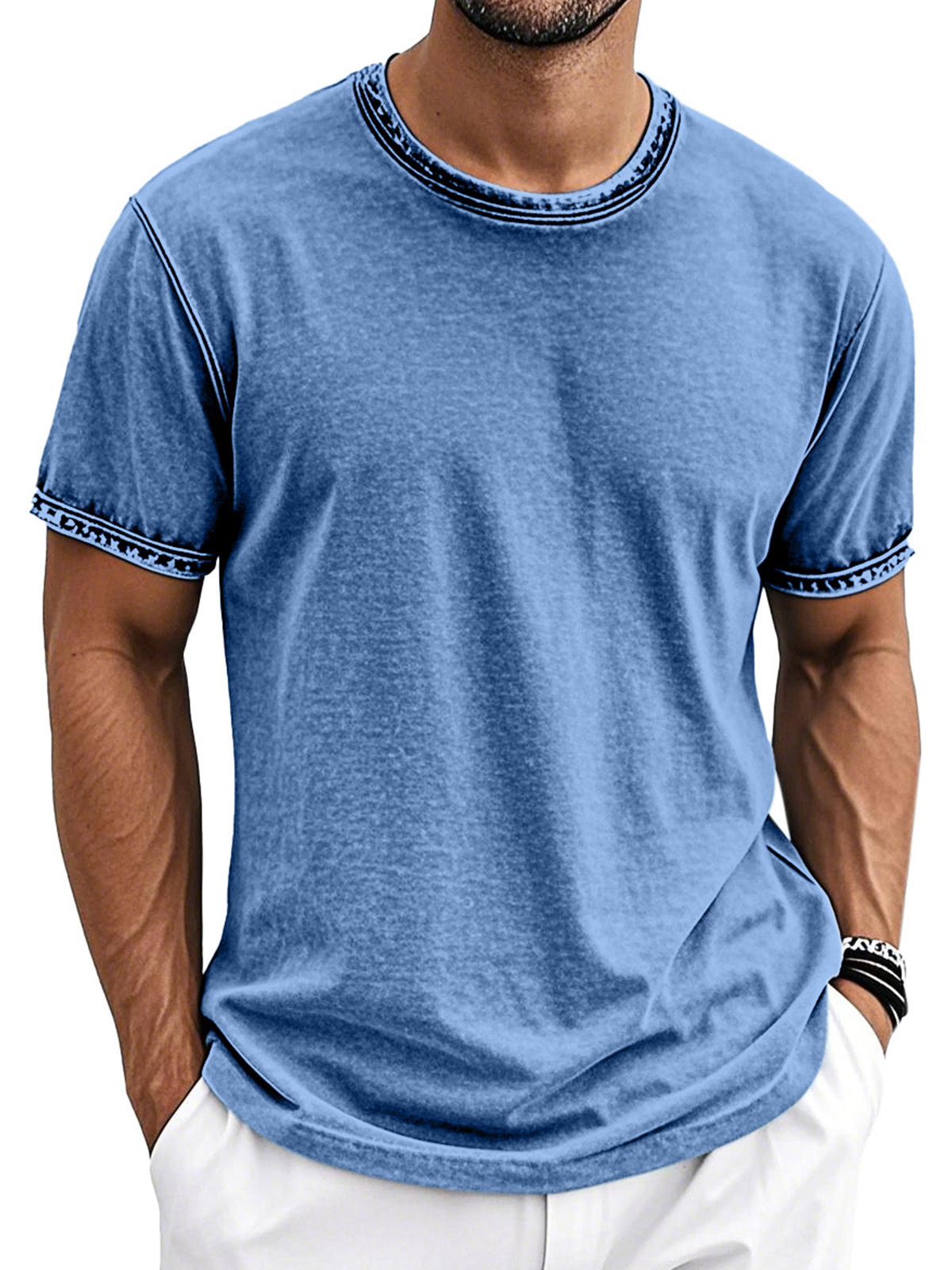 Men's Retro Cotton Washed Round Neck Short-sleeved T-shirt