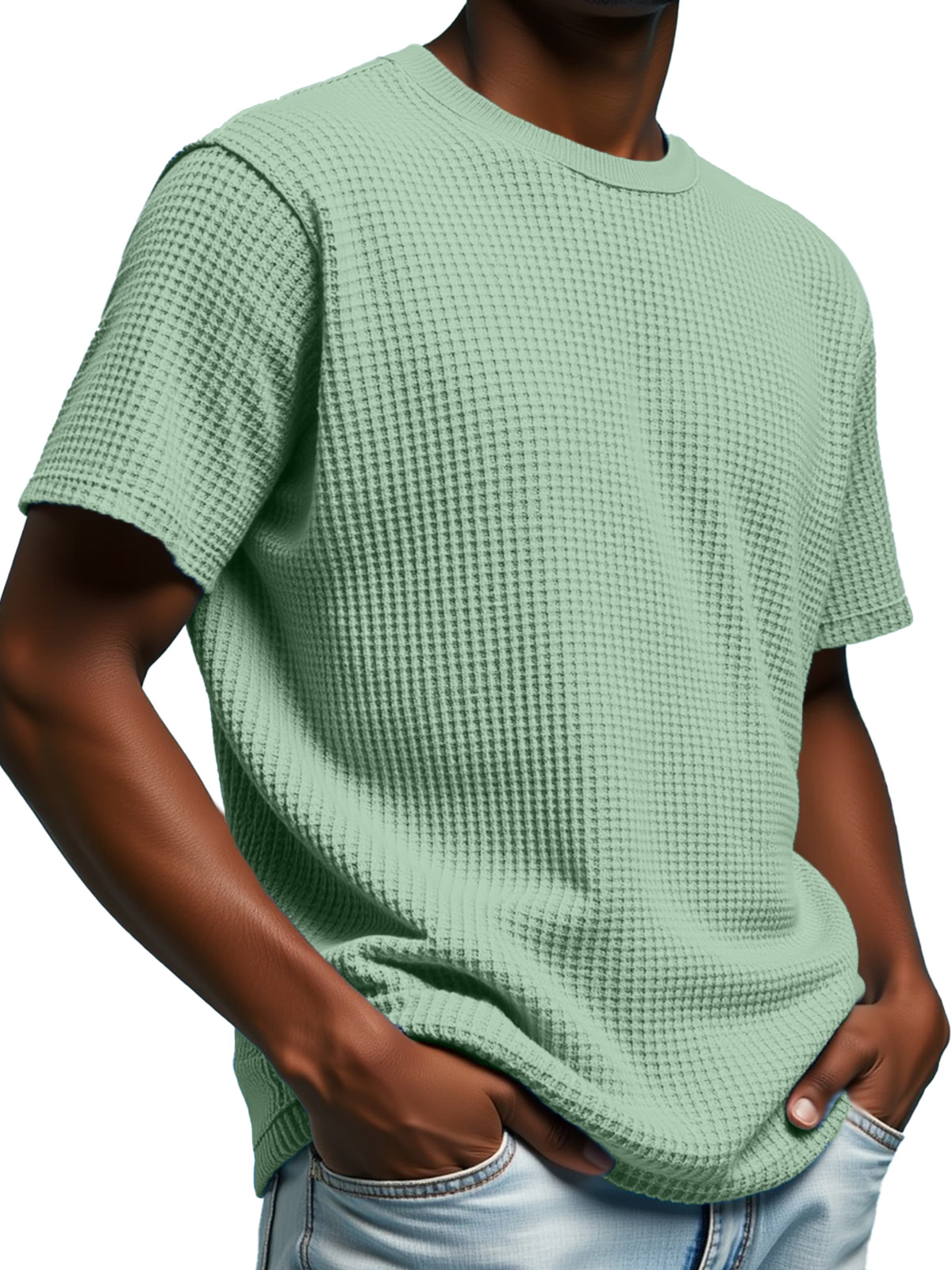 Men's Solid Color Waffle Comfort Short Sleeve T-shirt