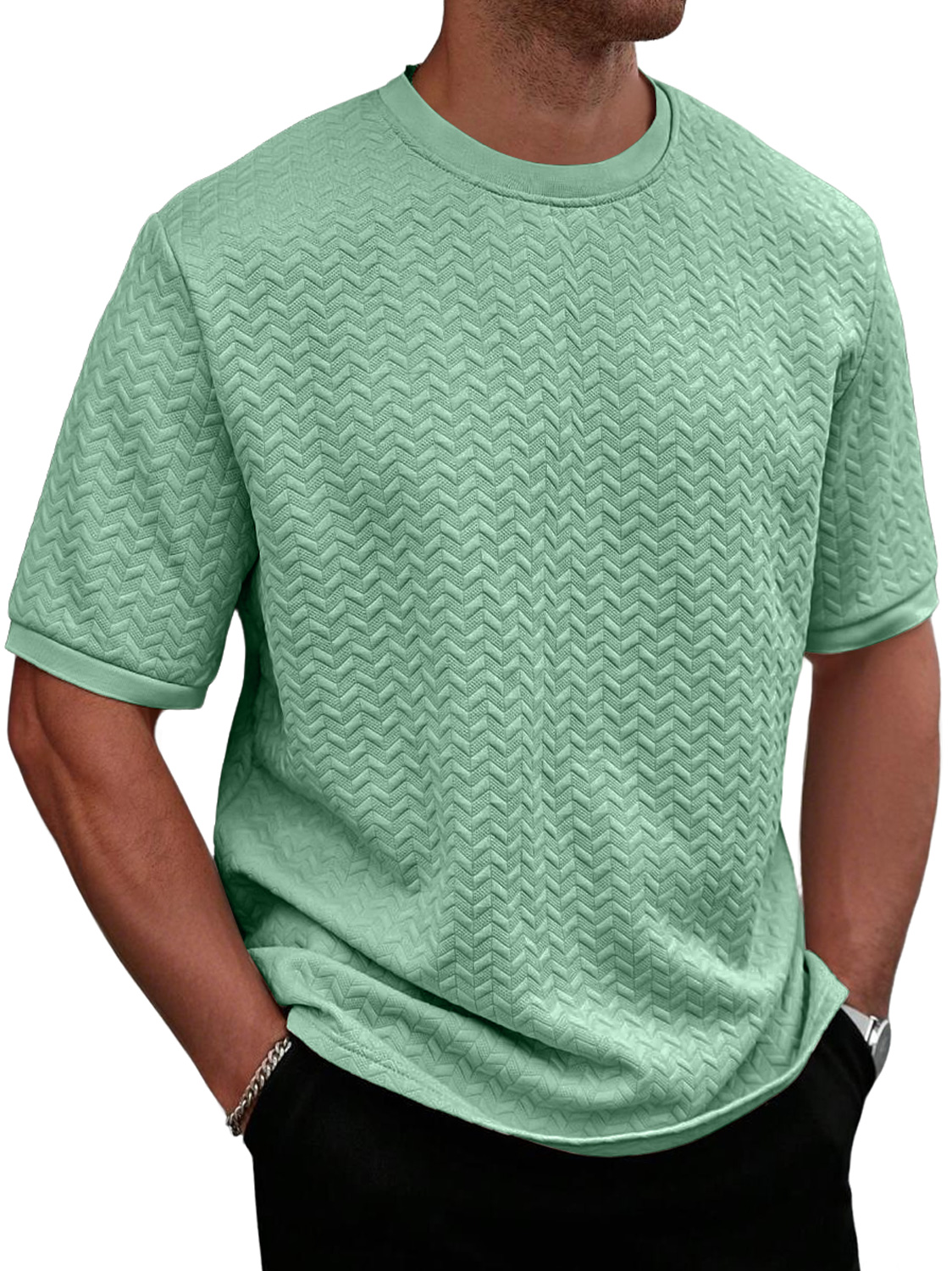 Men's Daily Round Neck Texture Casual Solid Color Comfortable Short-sleeved T-shirt