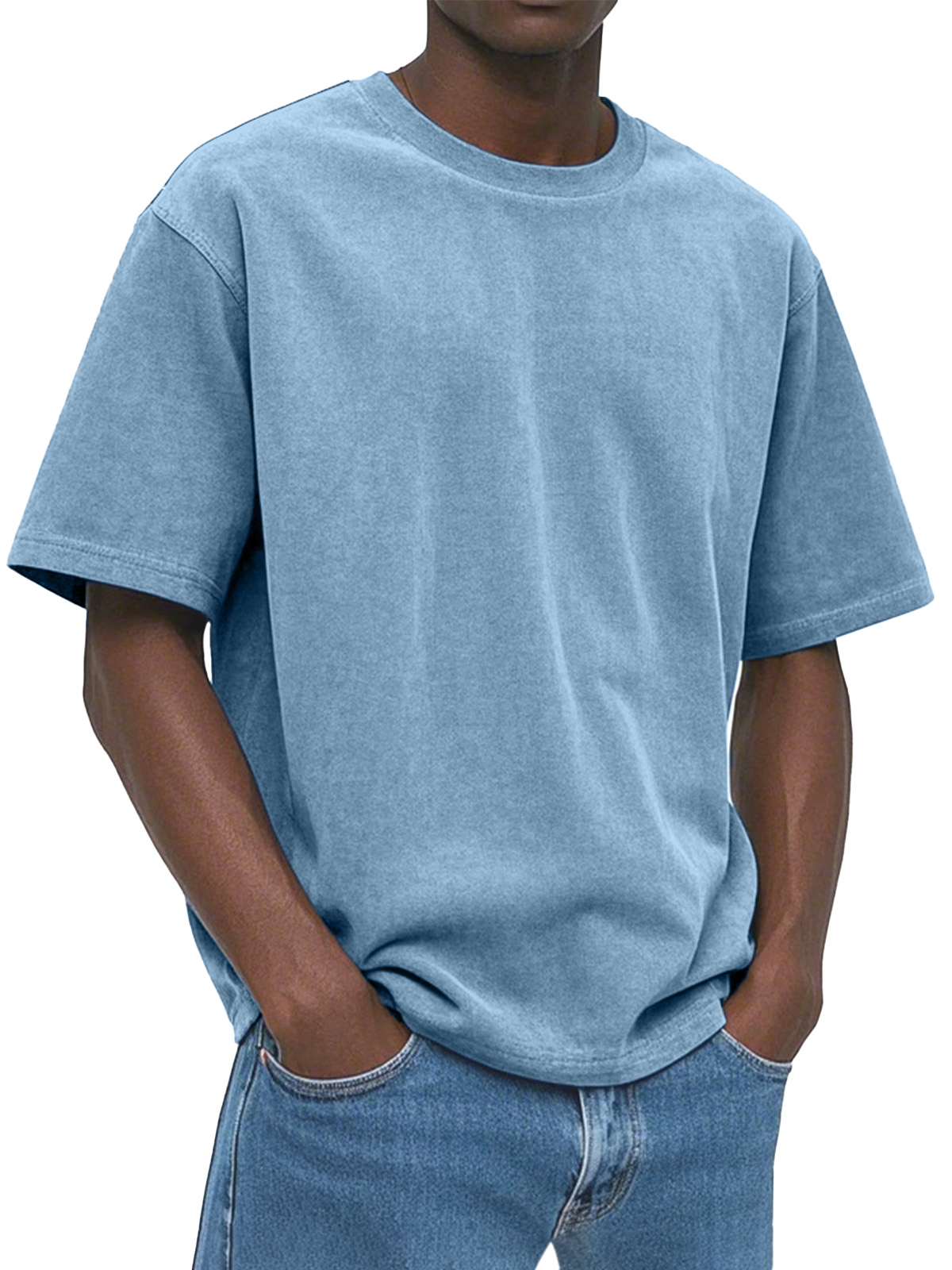 Men's Retro Simple Daily Solid Color Washed Cotton T-shirt