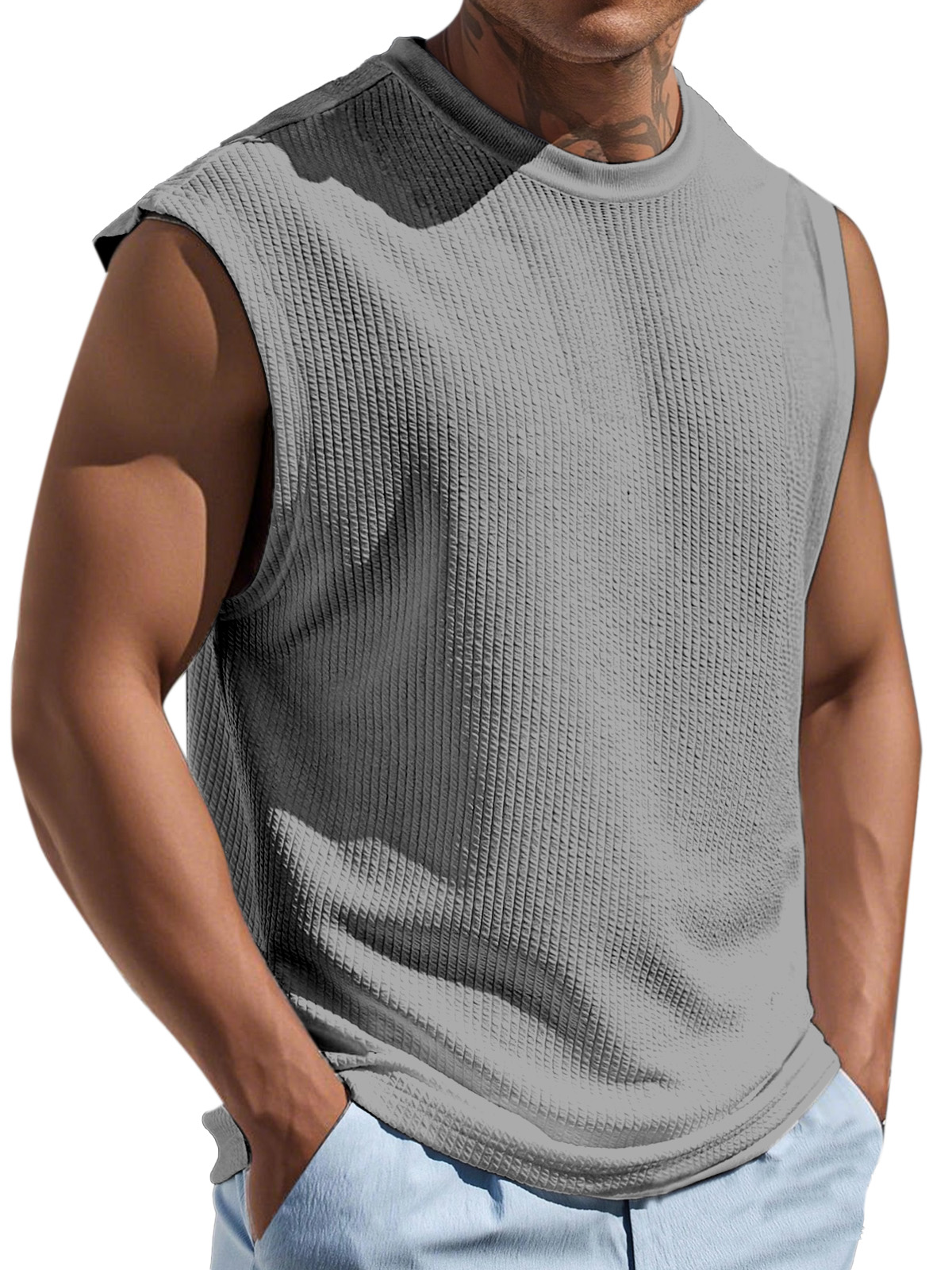 Men's Casual And Comfortable Texture Solid Color Round Neck Sleeveless T-shirt