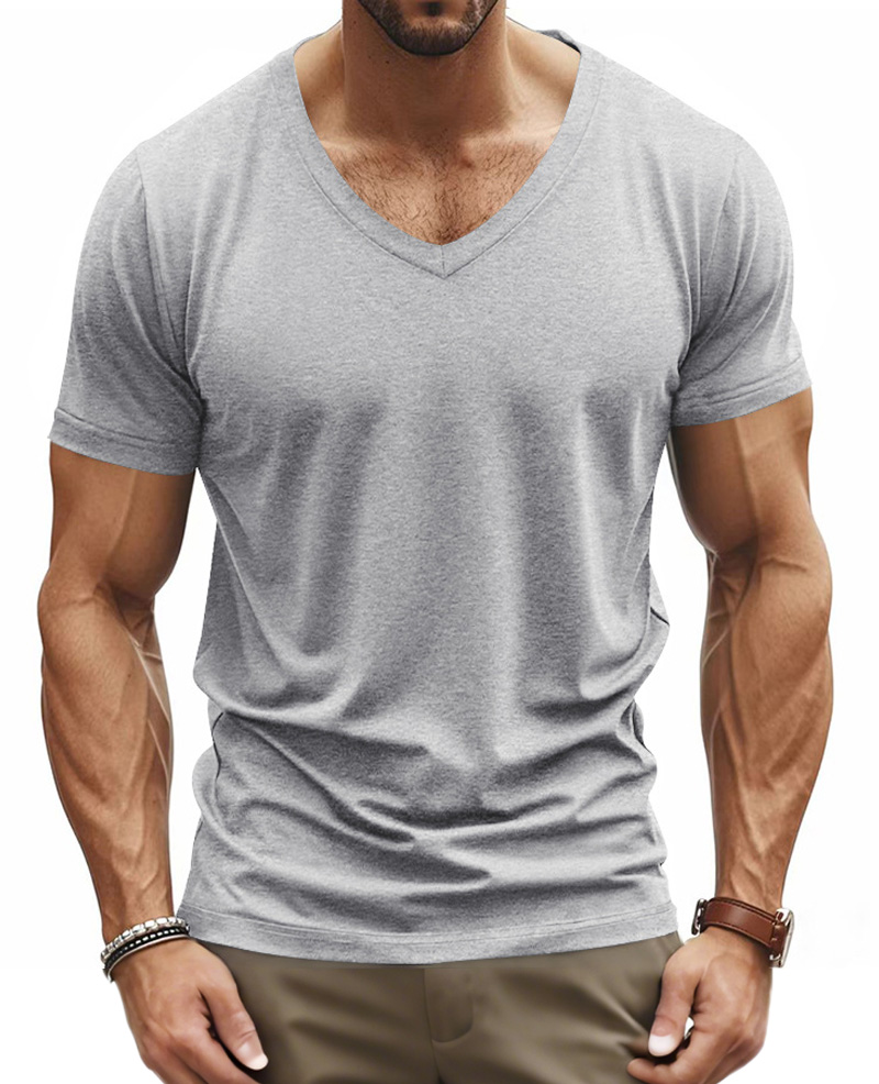 Men's Summer Solid Color Comfortable V-neck Short-sleeved T-shirt