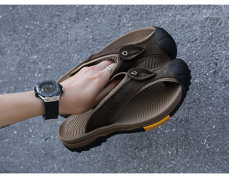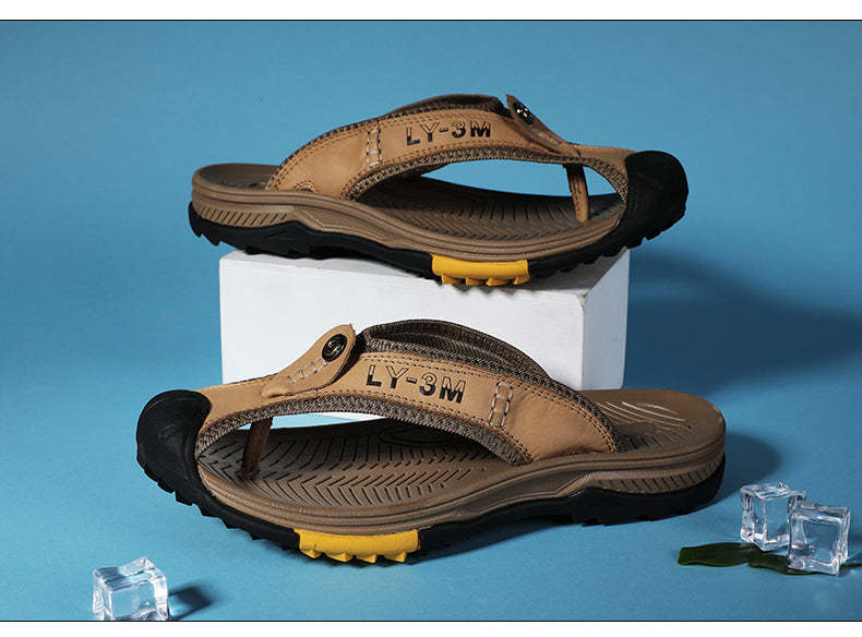 Leather Shoes Men's Sandals Men's Flip Flops Men's Casual Shoes Classic Massage Beach Slippers Anti-slip