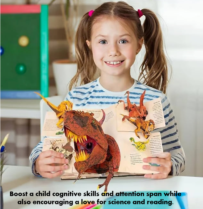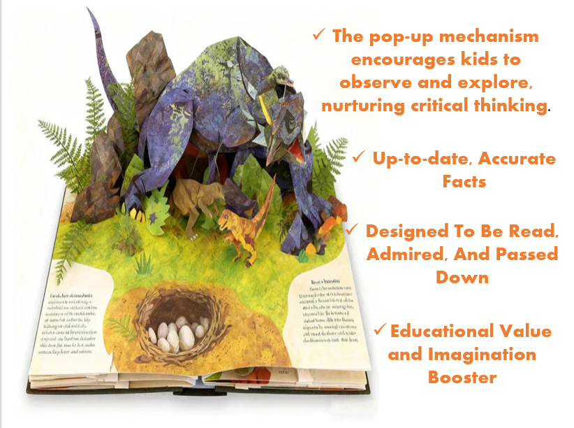 The 3D pop-ups train spatial awareness, helping kids "see" how dinosaurs' bodies work, linking shapes to real creatures. Gently flipping pages and touching pop-ups helps little hands practice control for writing & crafting.