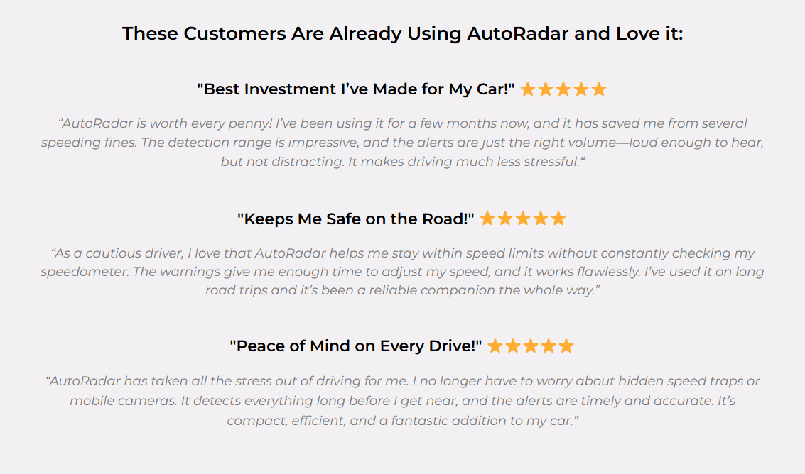 What truly sets AutoRadar apart is how it combines the best of both worlds—cutting-edge technology with user-friendly design, all in one compact device. Its standout feature is its highly advanced radar detection system that doesn’t just pick up on fixed speed cameras, but mobile and hidden units as well. It gives you an extra edge on the road by alerting you to any approaching radar in real-time, making sure you have ample time to react. But AutoRadar isn’t just about what it detects; it’s about how it works for you. It’s incredibly easy to install, requiring no technical knowledge—just plug it in, and you’re good to go. Plus, you don’t have to worry about hidden fees or monthly subscriptions because AutoRadar offers lifetime protection for a one-time purchase. For drivers who value peace of mind and hassle-free driving, AutoRadar is the ideal choice. It keeps you informed, safe from surprise fines, and ensures you stay in control behind the wheel, making it a truly special addition to any vehicle.