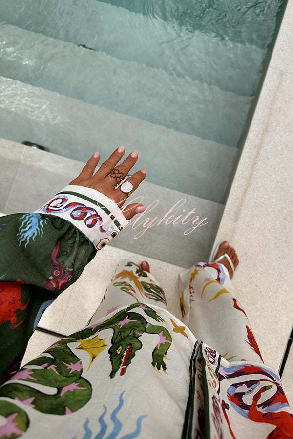Bohemian Beauty Unique Print Long Sleeve Loose Shirt and Elastic Waist Pants Set