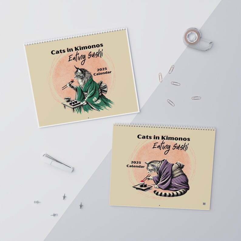 Get this 2025 'Cats in Kimonos Eating Sushi' calendar now and let your life be filled with surprises and art every day.