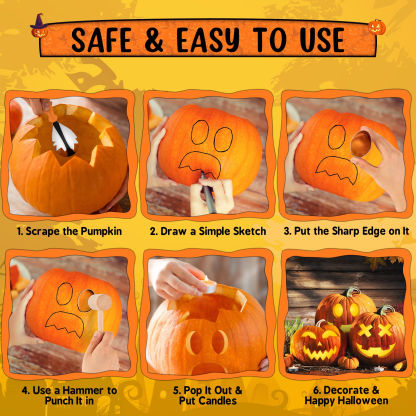 🙌 Safe for Kids & Easy to Operate: We have provided multiple styles creative pumpking carving manual for reference. It can fulfill different needs whether a beginner or a professional carver. The pumpkin carving tools are also safe for kids to DIY a variety of novelty pumpkin easily. Pumpkin as nessary Halloween decorations outdoor indoor, will add a scary atmosphere on Halloween night! It’s recommend that use rubber hammer and children under the age of 9 be under adult supervision.