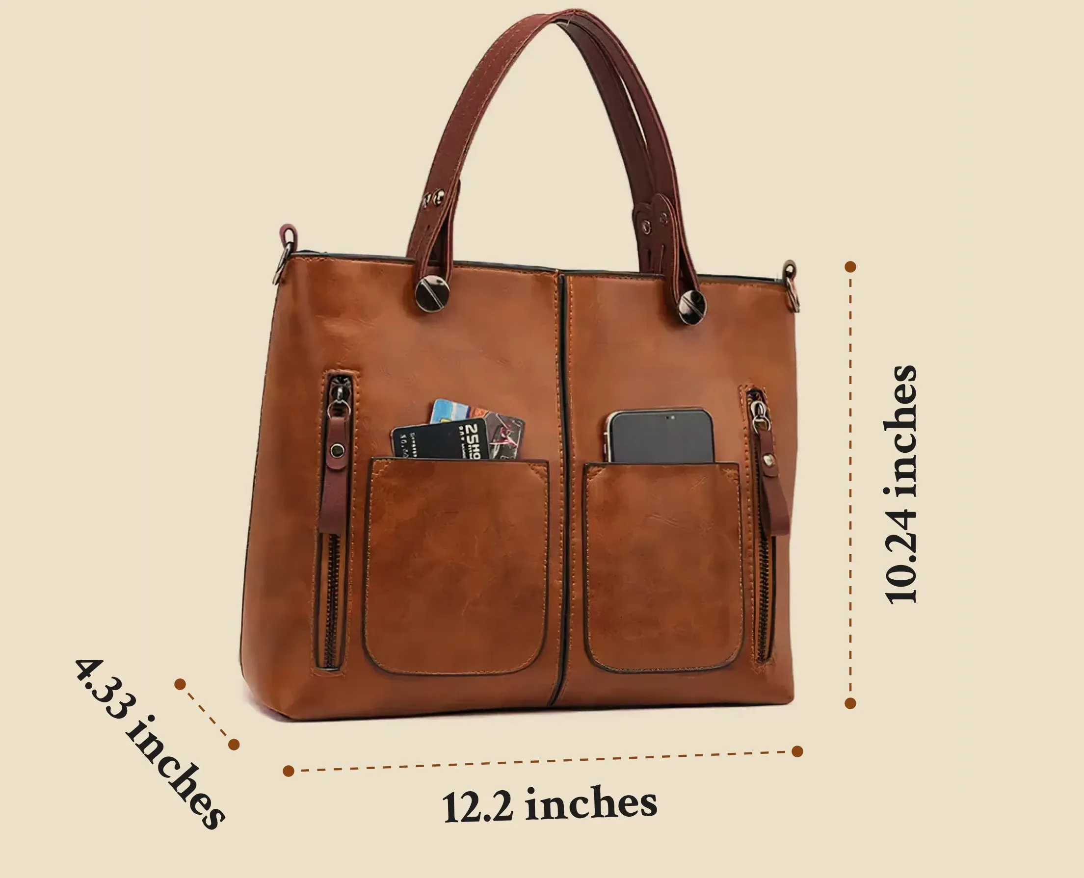 The perfect blend of style and practicality, this versatile leather bag is designed to carry all your essentials with ease. Made from high-quality leather, it features a classic yet modern design that complements any lifestyle. Whether you're heading to work, a chic dinner, or a casual brunch, this bag ensures you stand out with sophistication and confidence.