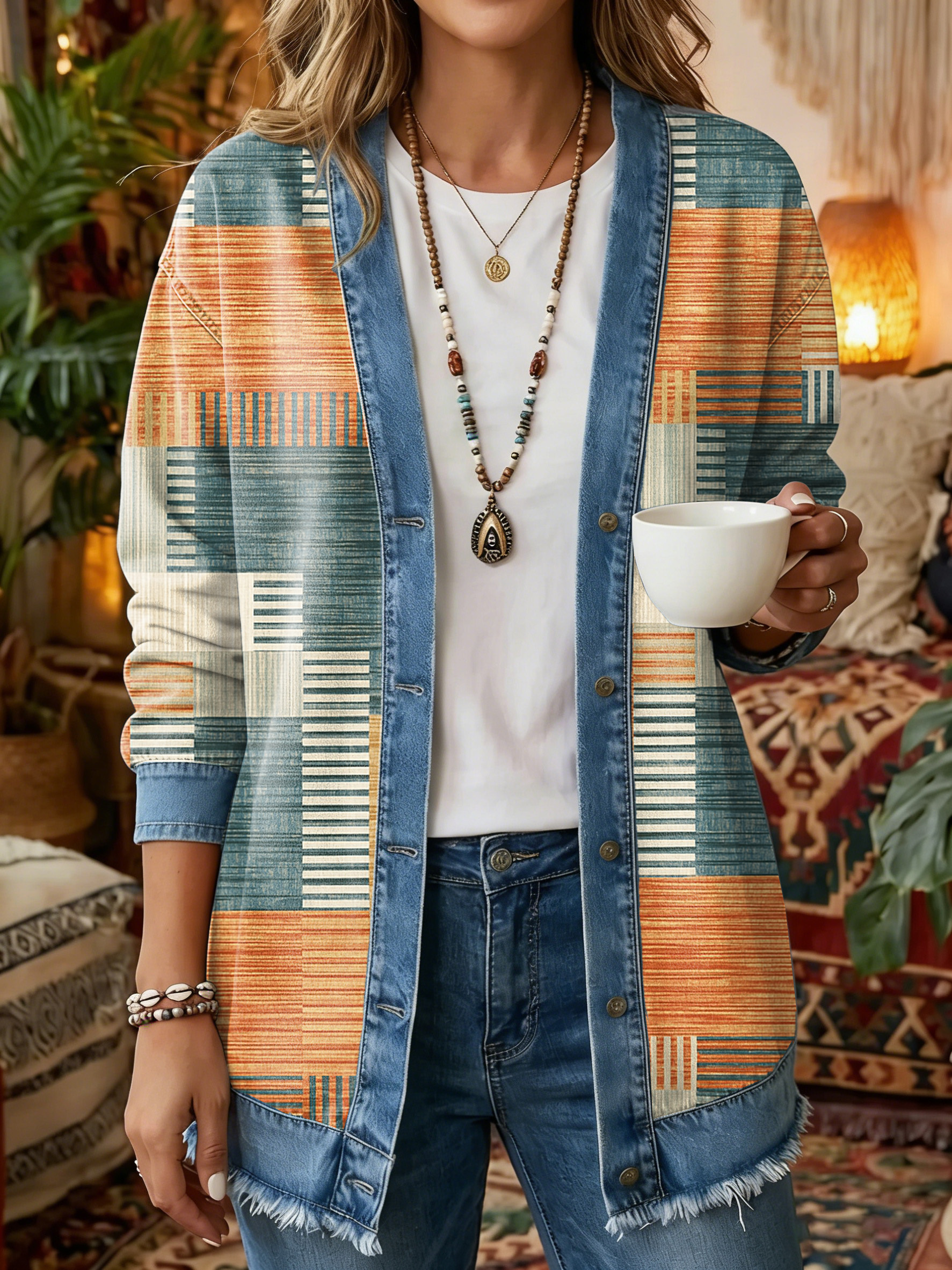 Women's Vintage Pattern Art Print Casual Long-sleeve Shirt Jacket