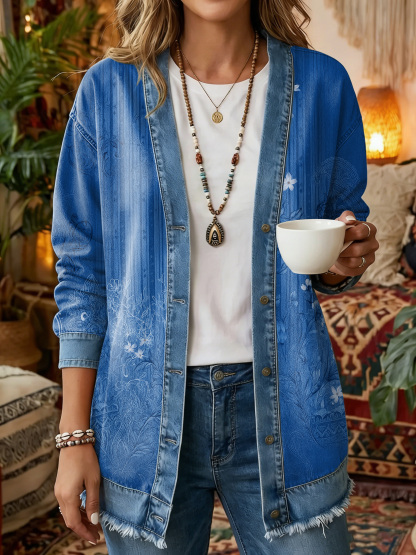 Women's Vintage Pattern Art Print Casual Long-sleeve Shirt Jacket