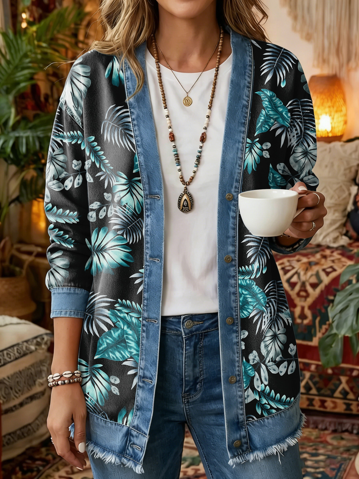 Women's Vintage Pattern Art Print Casual Long-sleeve Shirt Jacket