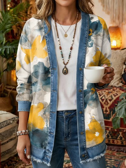 Women's Vintage Pattern Art Print Casual Long-sleeve Shirt Jacket