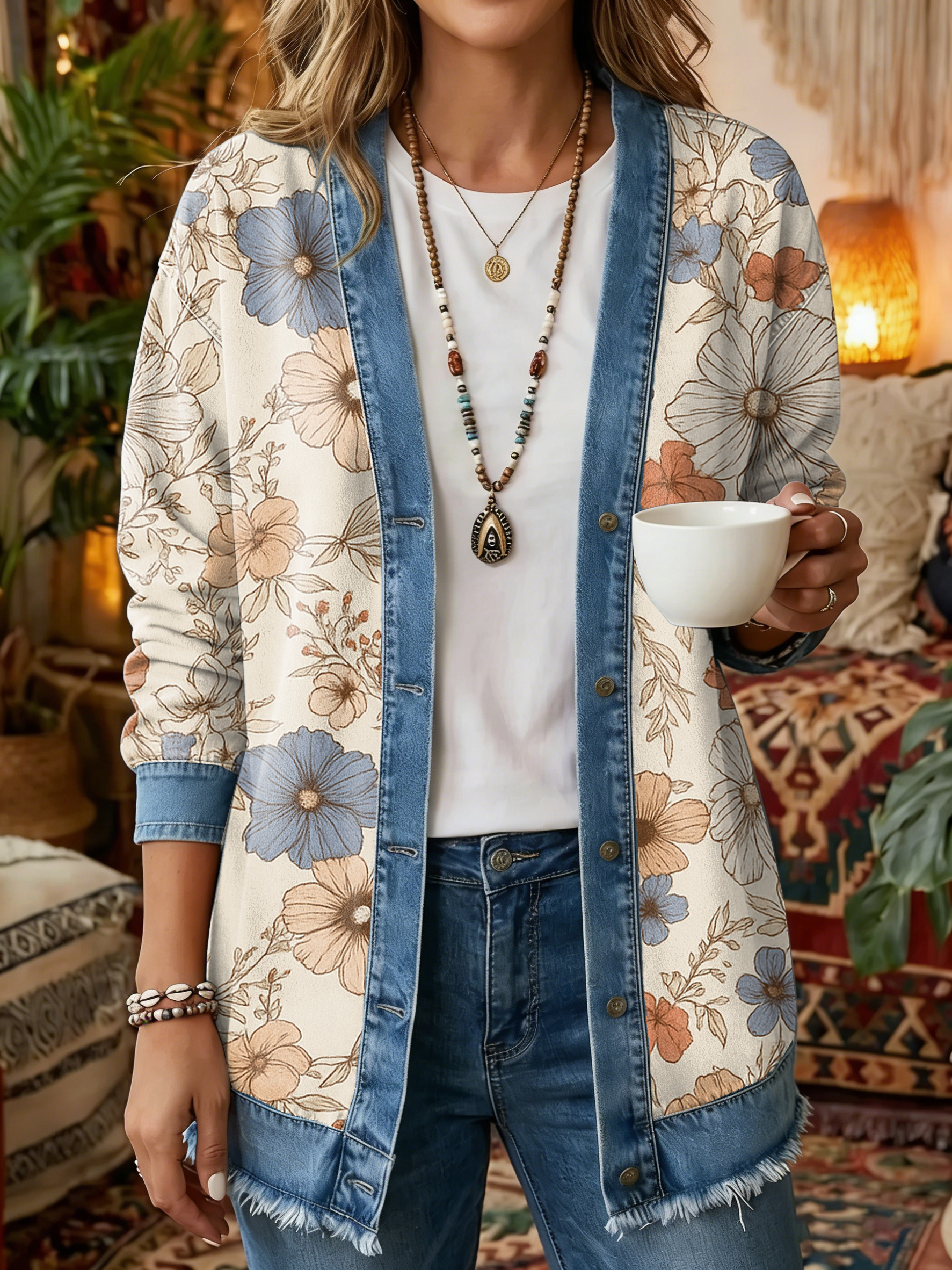 Women's Vintage Pattern Art Print Casual Long-sleeve Shirt Jacket