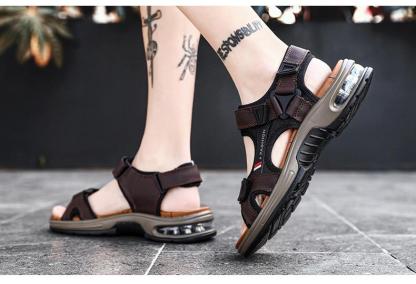 Men's Sandals Genuine Leather Men's Slippers Gladiator Men's Beach Sandals Soft, comfortable outdoor wading shoes