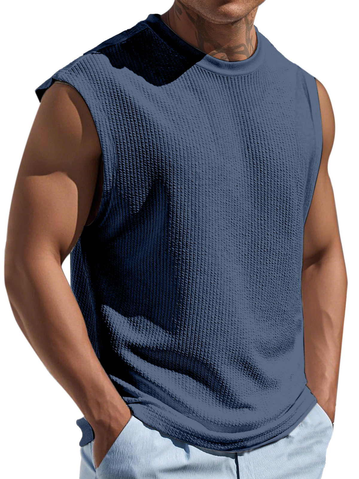 Men's Casual And Comfortable Texture Solid Color Round Neck Sleeveless T-shirt