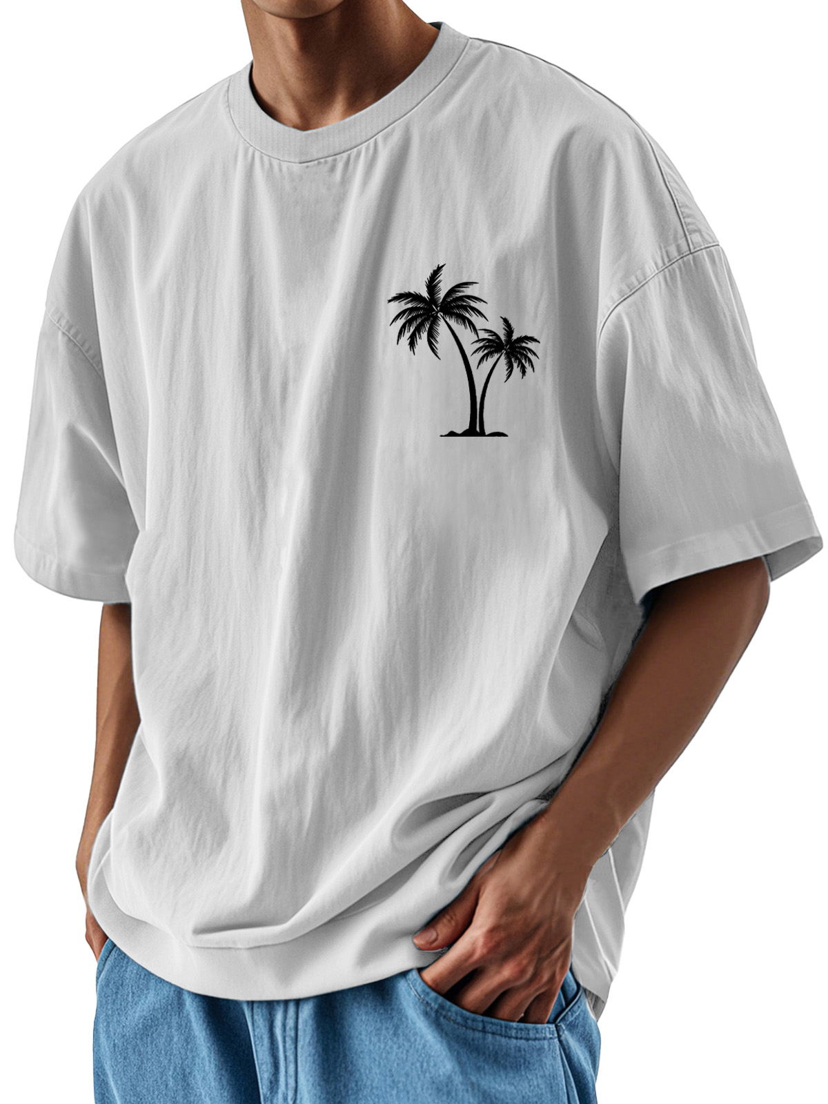 Men's Fashion Casual Loose Pocket Coconut Print Short Sleeve T-Shirt