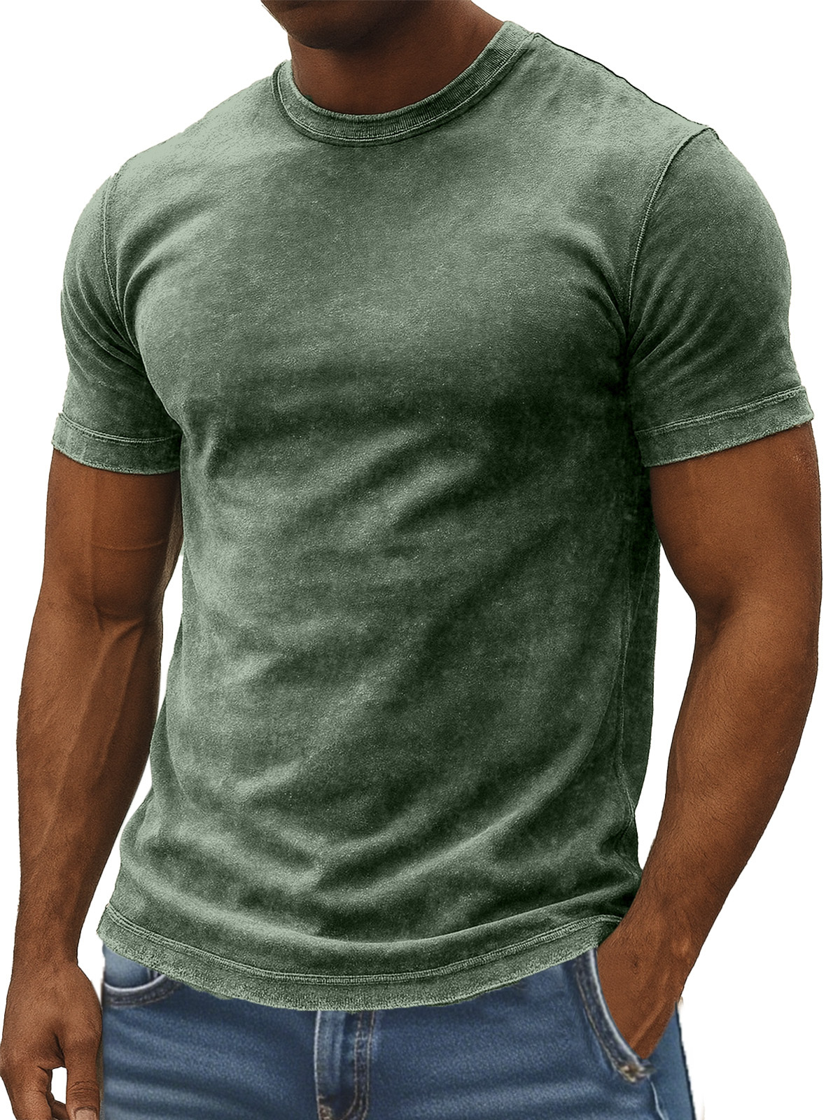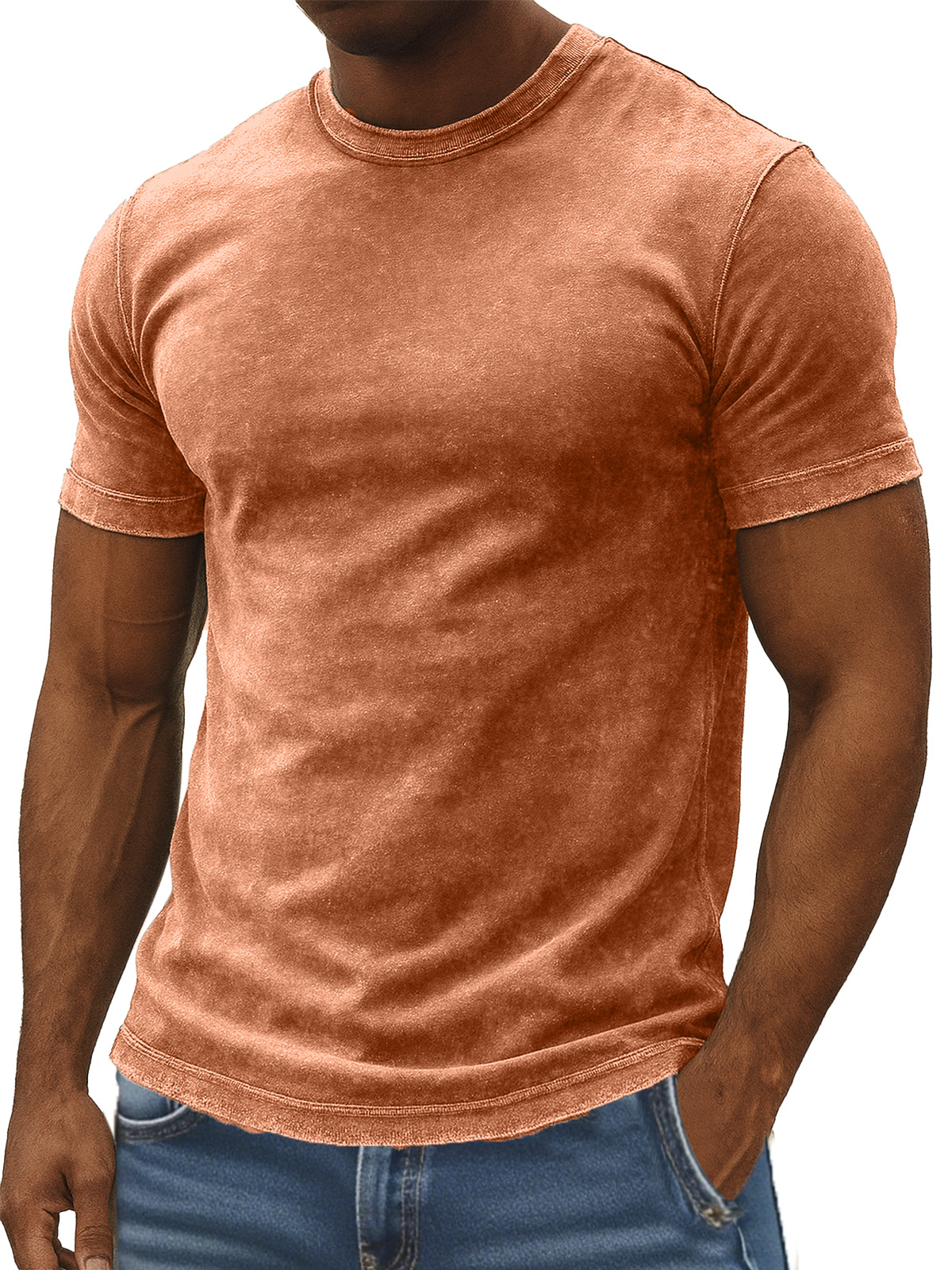 Men's Retro Simple Daily Solid Color Washed Cotton T-shirt
