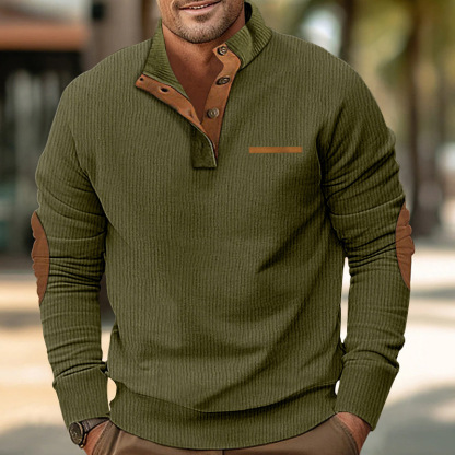 Men's stand collar long sleeve corduroy colorblock sweatshirt