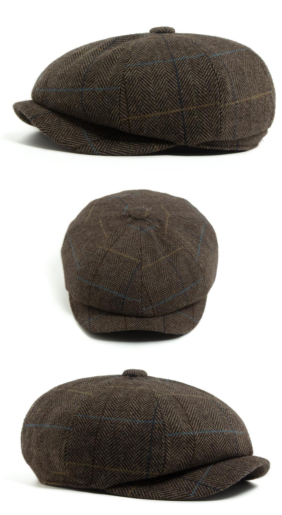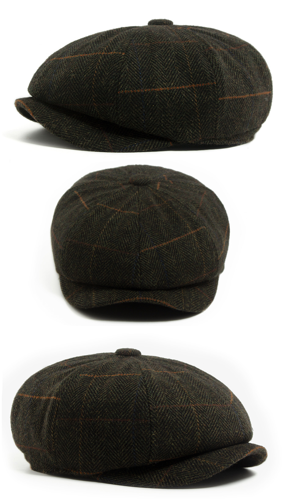 Octagonal wool newsboy cap