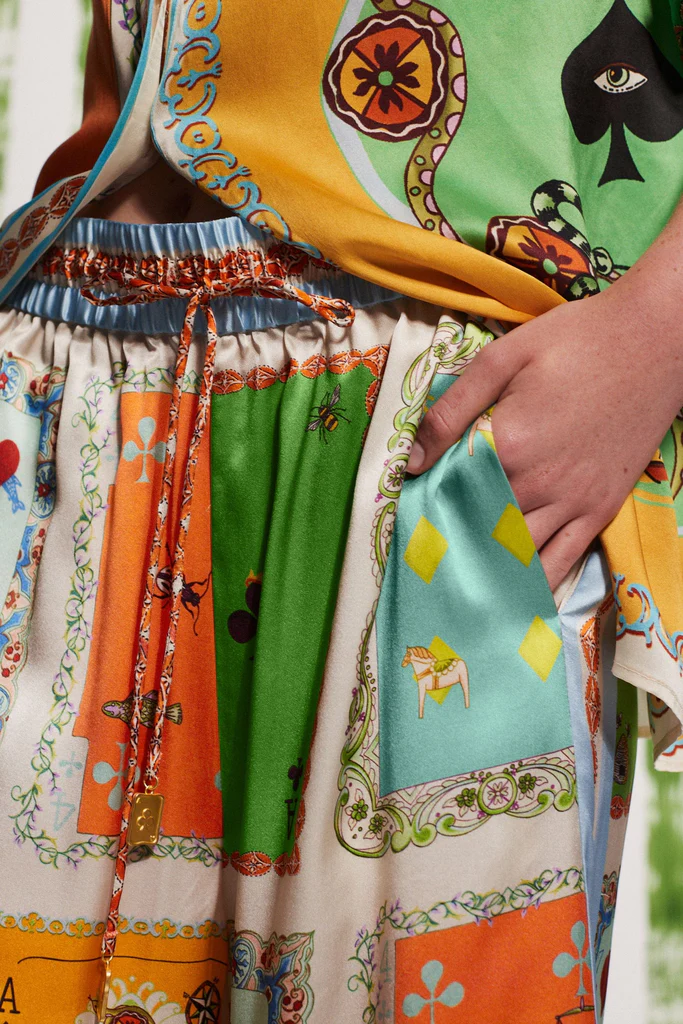 Funny Poker Summer Satin Unique Print Elastic Waist Pocketed Wide Leg Pants