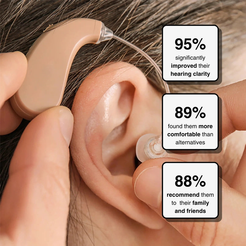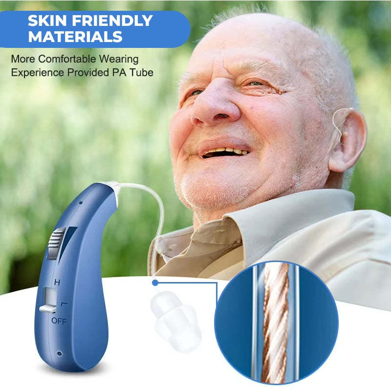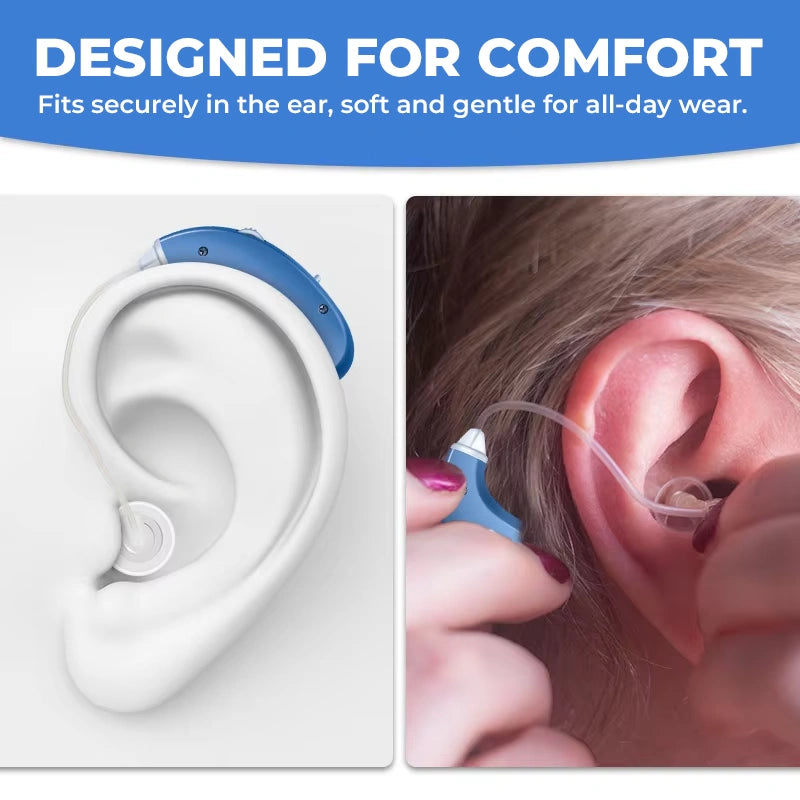 Designed with lightweight materials and soft silicone ear tips in multiple sizes, these hearing aids stay secure and irritation-free. The slim behind-the-ear design fits comfortably with glasses, making them ideal for extended daily use at home or on the go.