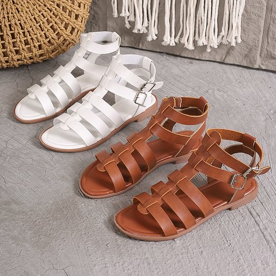 Summer Hollow Woven Thick Heel Non-Slip Sand Roman Shoes