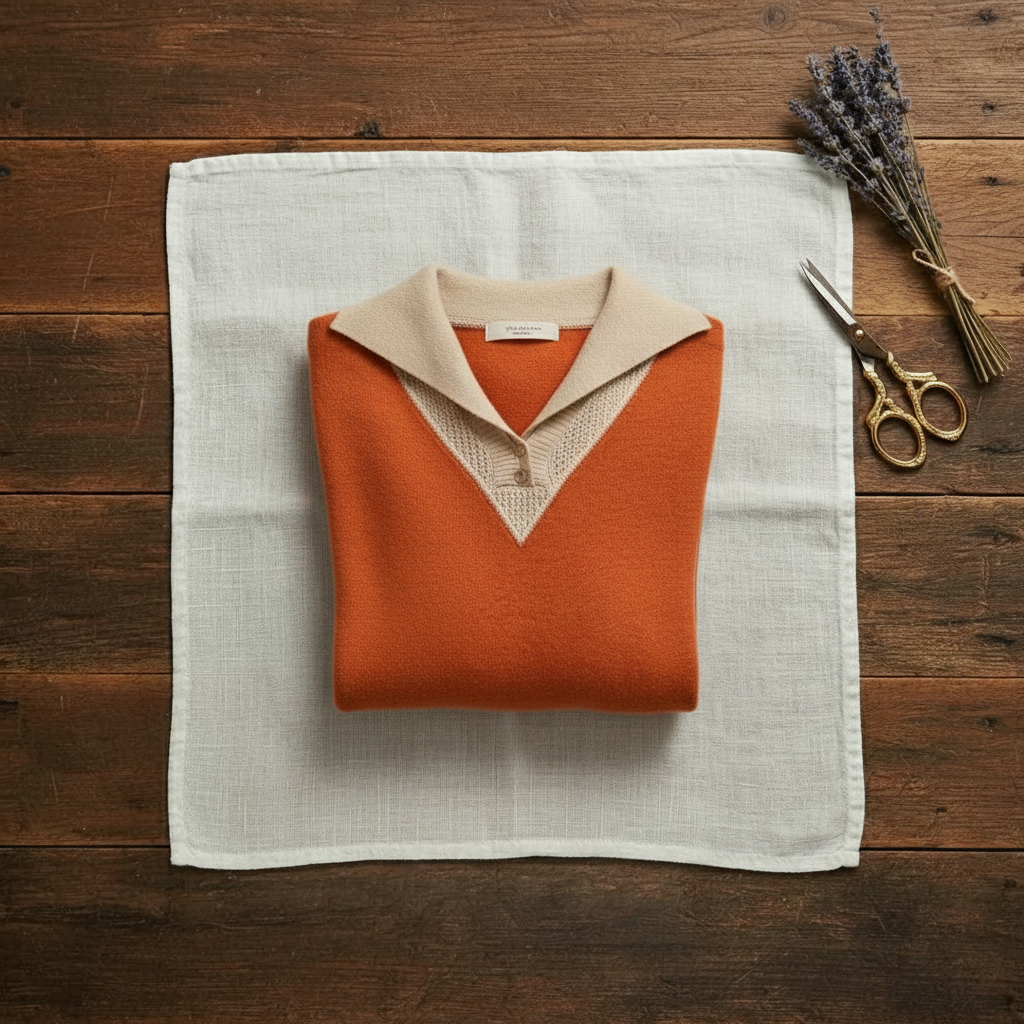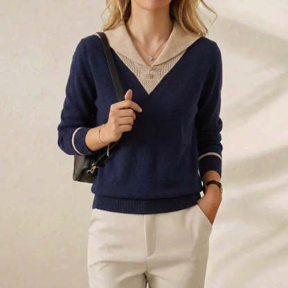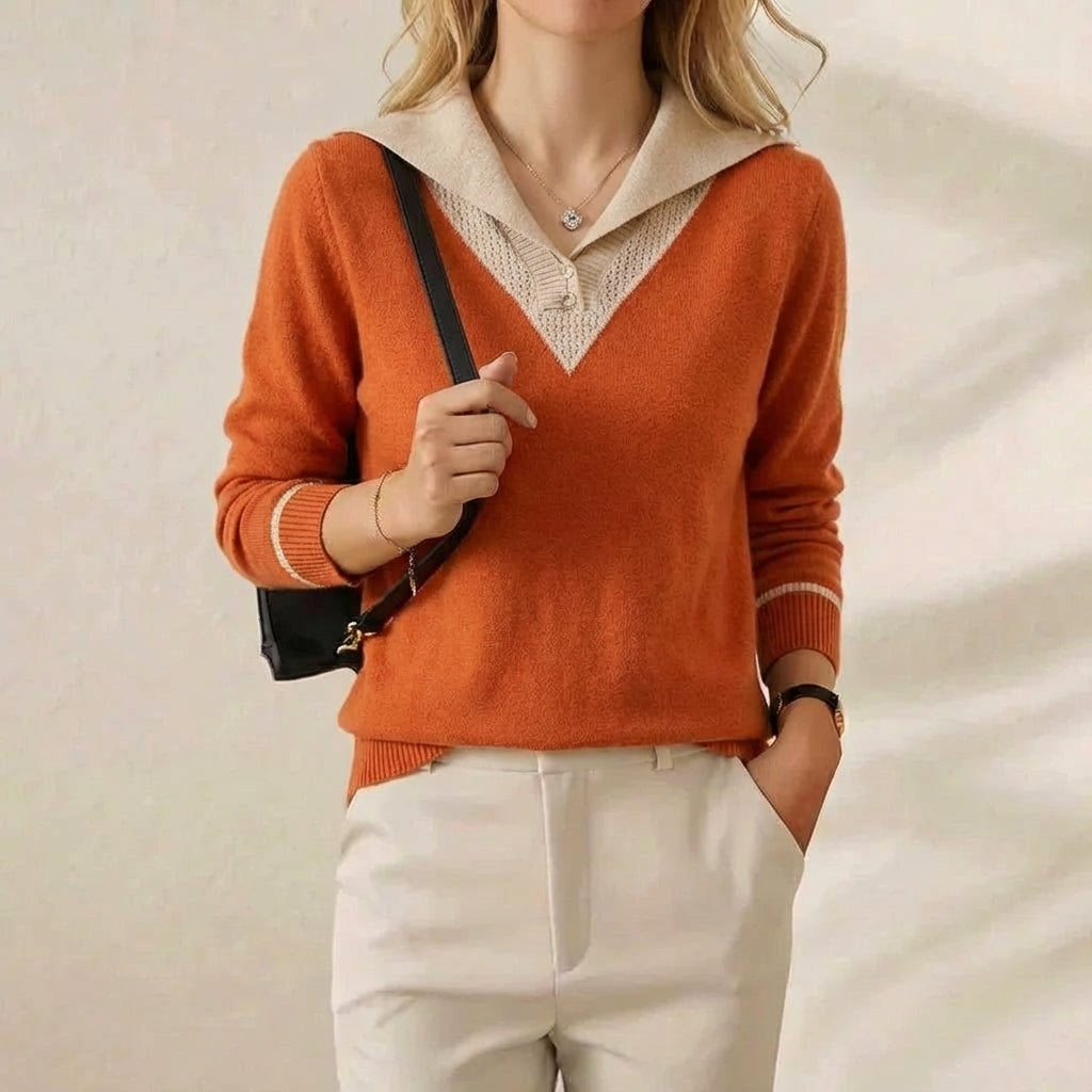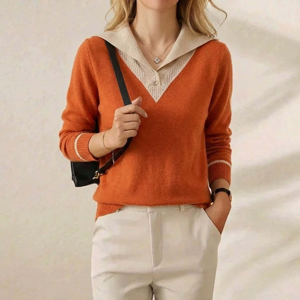 Cashmere V-Neck Sweater with Contrast Collar