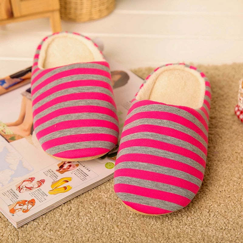 Women Warm Indoor Slippers Fur Striped Winter Slides