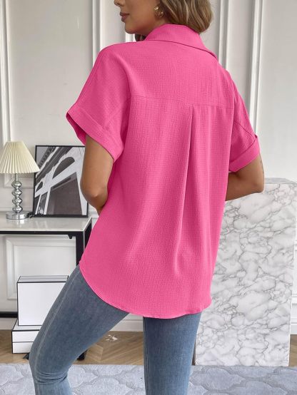 • Feature: Polo Collar Shirt for women; Button blouse; Roll-Up Cuffed Short Sleeve Shirts Casual; Worktops for women; Flower boho summer shirt
